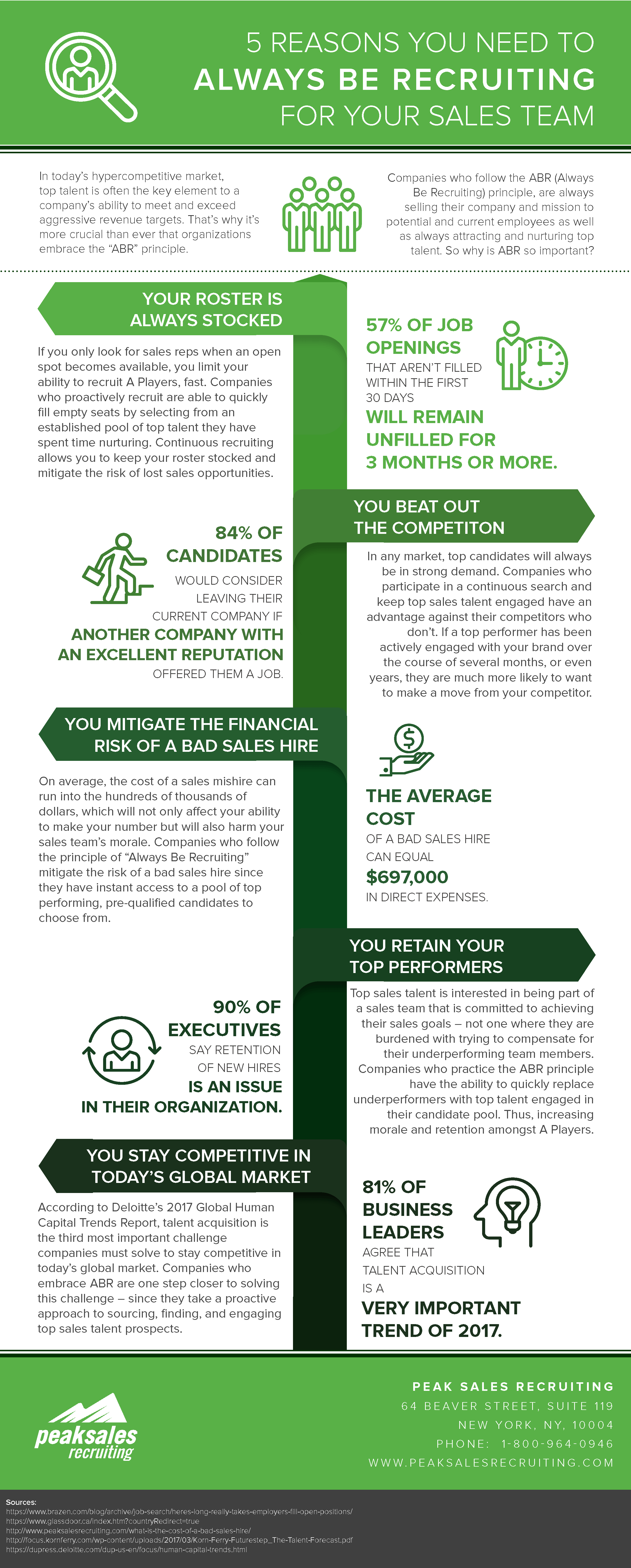 This infographic details five reasons you need to always be recruiting for your sales team: