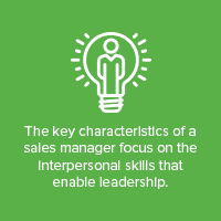 successful sales representative. In fact, most sales reps make bad managers. The key characteristics of a sales manager focus less on selling ability and more about the interpersonal skills that enable leadership.