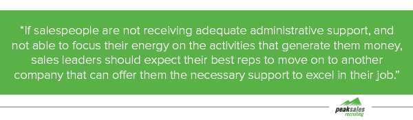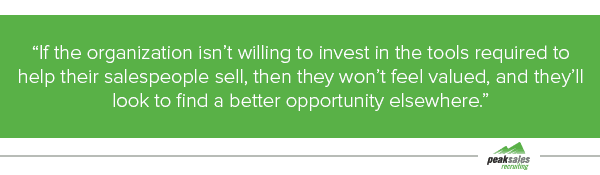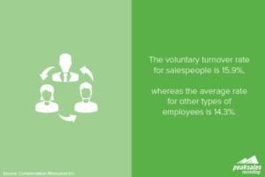 team’s culture. Great salespeople leave their employers for a reason, and any company that suffers from a high churn rate in the sales department needs to take a deep look at why their talent is departing in order to improve retention rates.